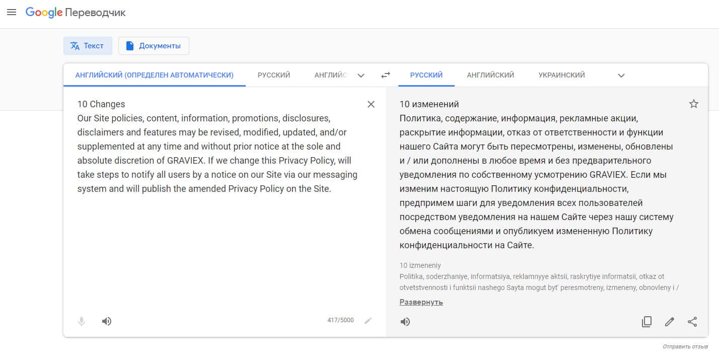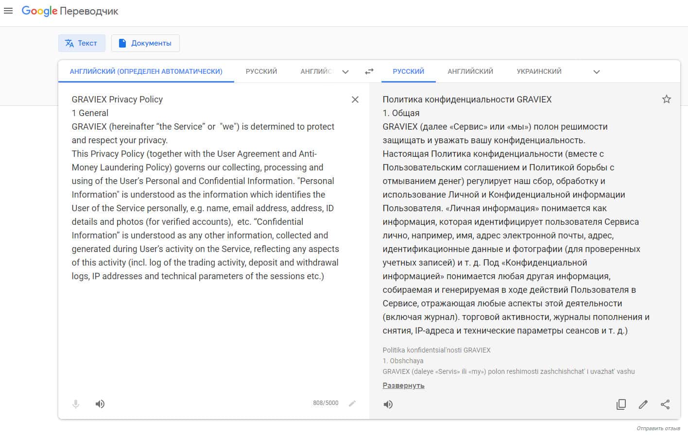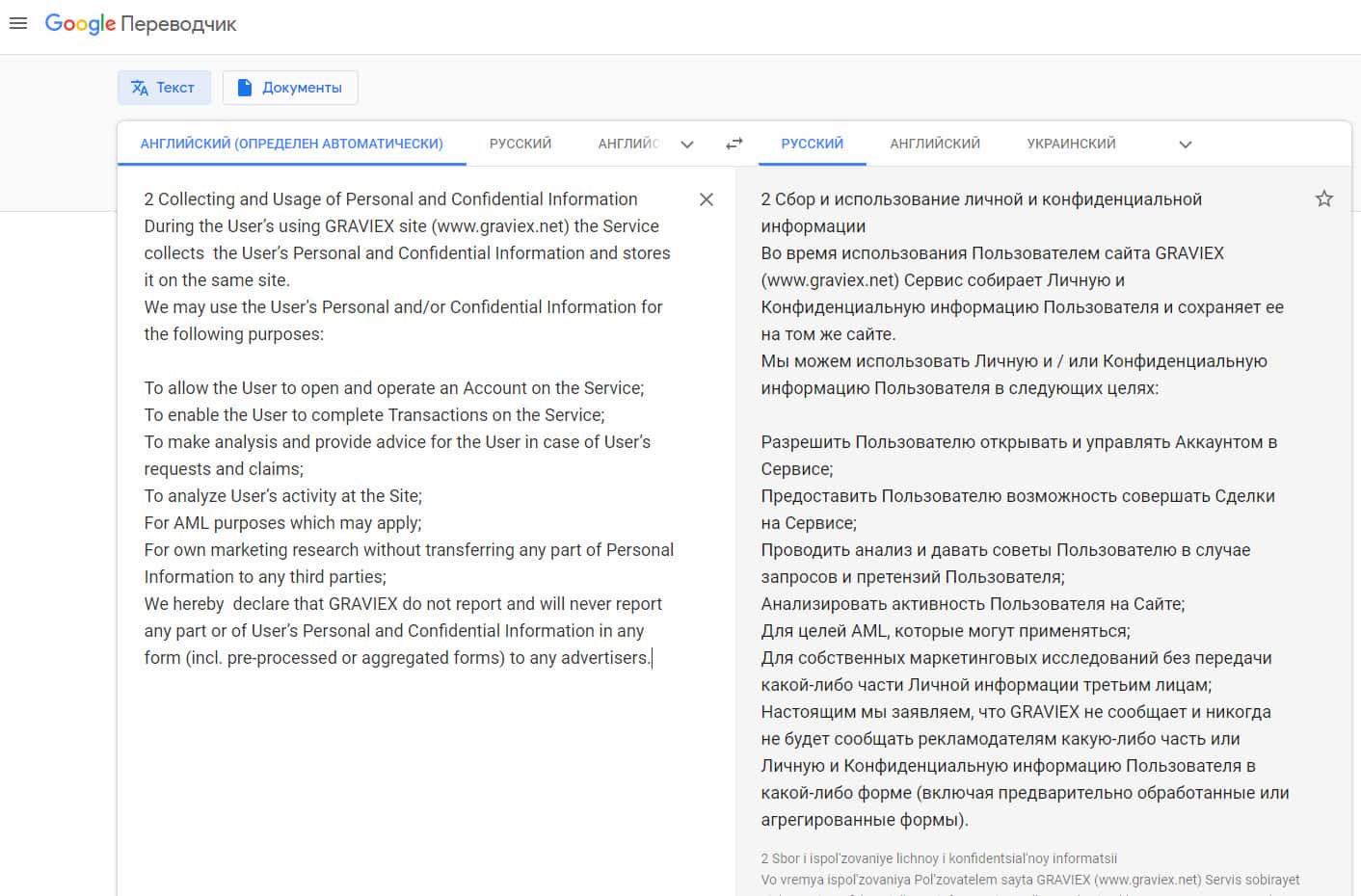 - Условия политики конфиденциальности аферистов GRAVIEX