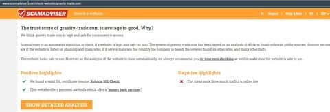 Что говорит сервис скамадвайзер ком о сайте gravity-trade com?