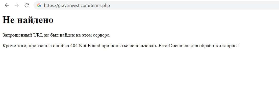Информация о главном интернет ресурсе мошеннического проекта GraysInvest