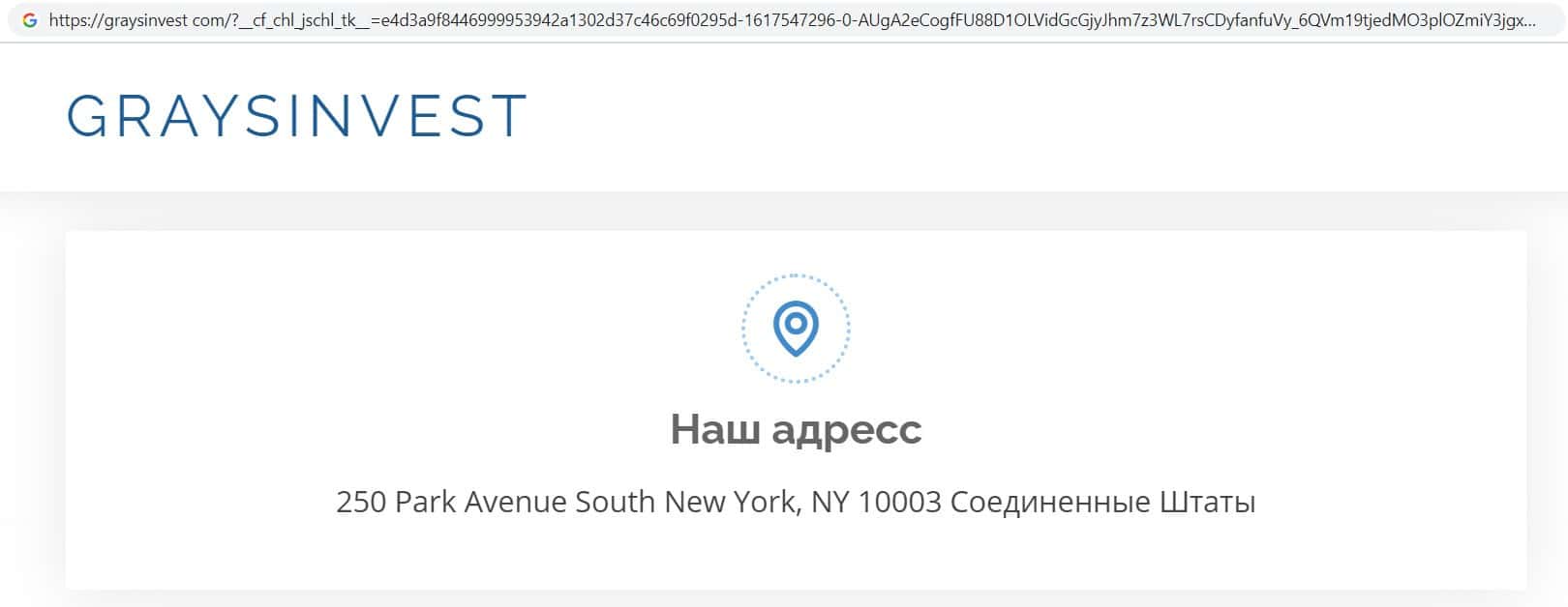 Фирма разводил GraysInvest так же указала на своём сайте место своей регистрации, но мошенники часто используют фальшивую информацию, так что доверять ей не стоит.