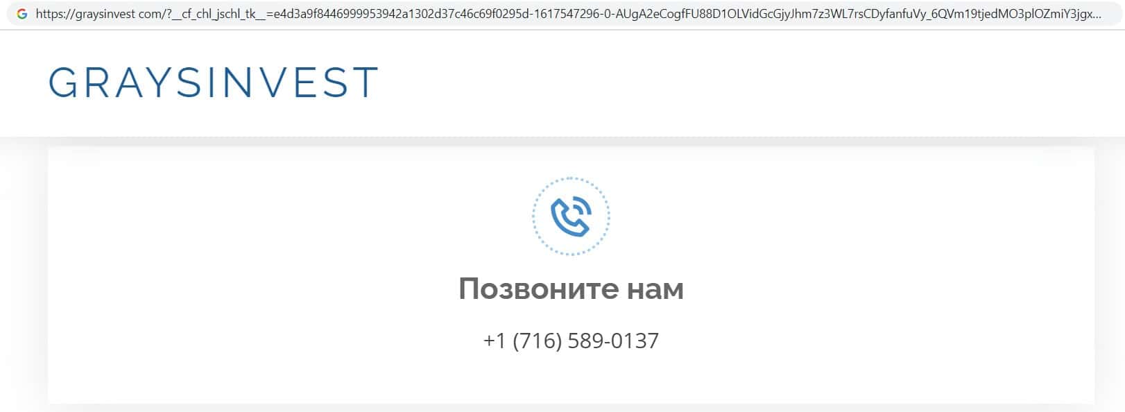 Мошенническая контора GraysInvest указала контактный номер телефона, с которого администрация проекта звонит пользователям и заманивает в свою ловушку. Номер кидал: