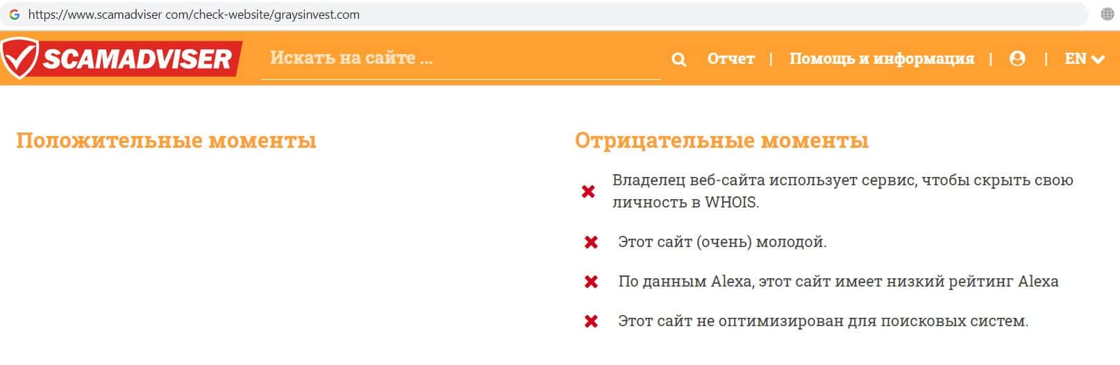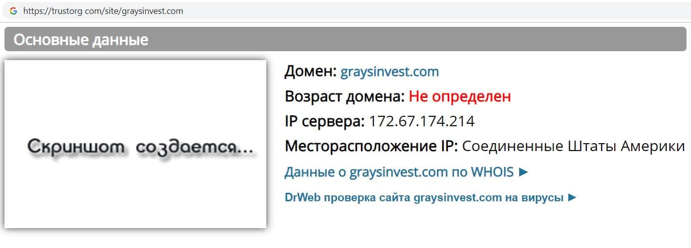 - Информация о главном интернет ресурсе мошеннического проекта GraysInvest