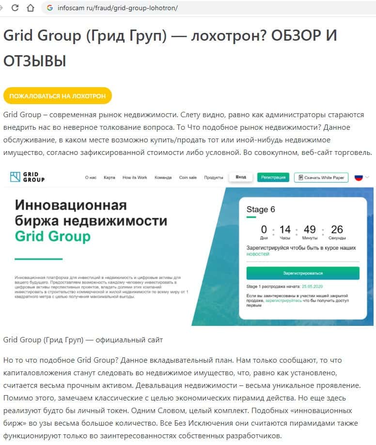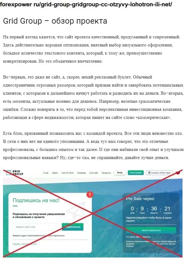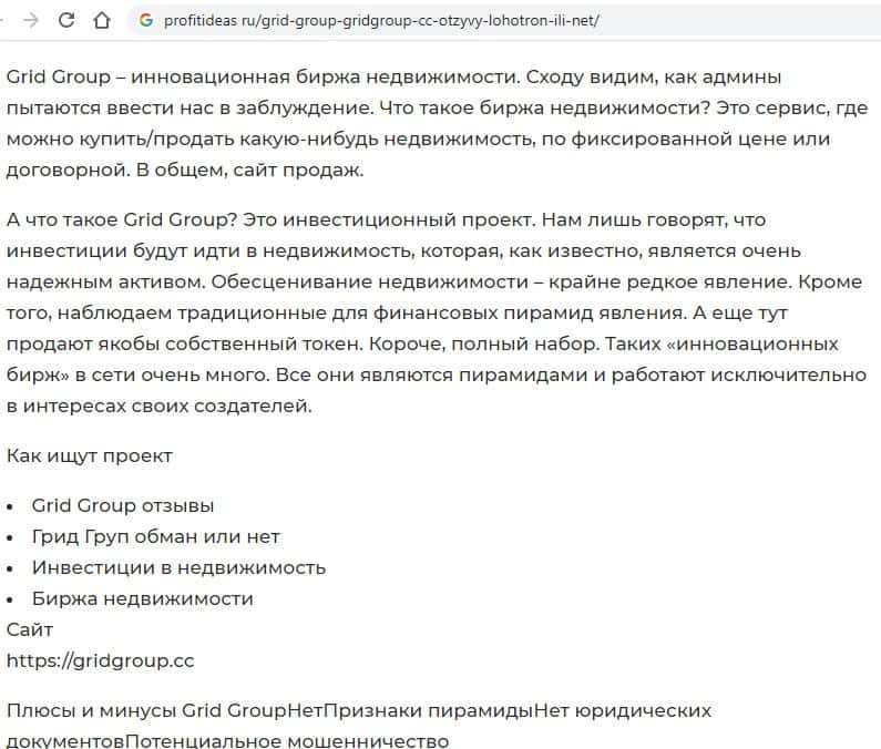 Развод Грид Групп видят на многих авторитетных сайтах, так что мошенникам от правды не скрыться, как бы они не пытались это сделать.
