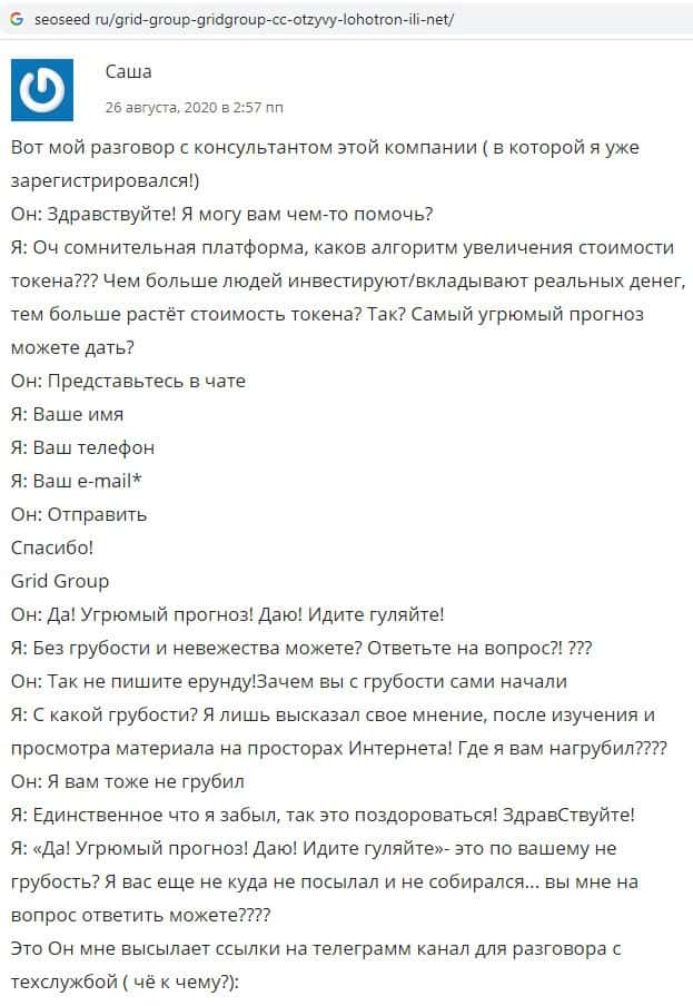 - Отзывы о жуликах Грид Групп на разных сайтах в интернете