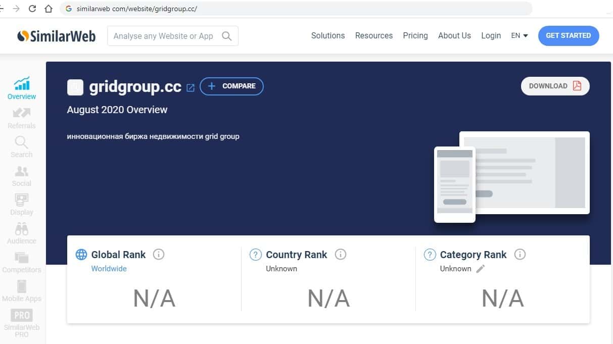 Сайт мошеннического сайта gridgroup cc настолько убогий, что по нему не показываются даже источники трафика. Об этом сразу можно сделать вывод, с кем мы имеем дело.