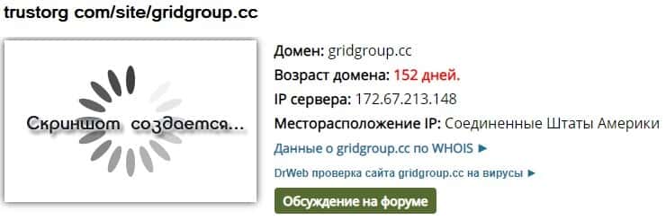 Домен мошенников gridgroup cc существует 152 дня