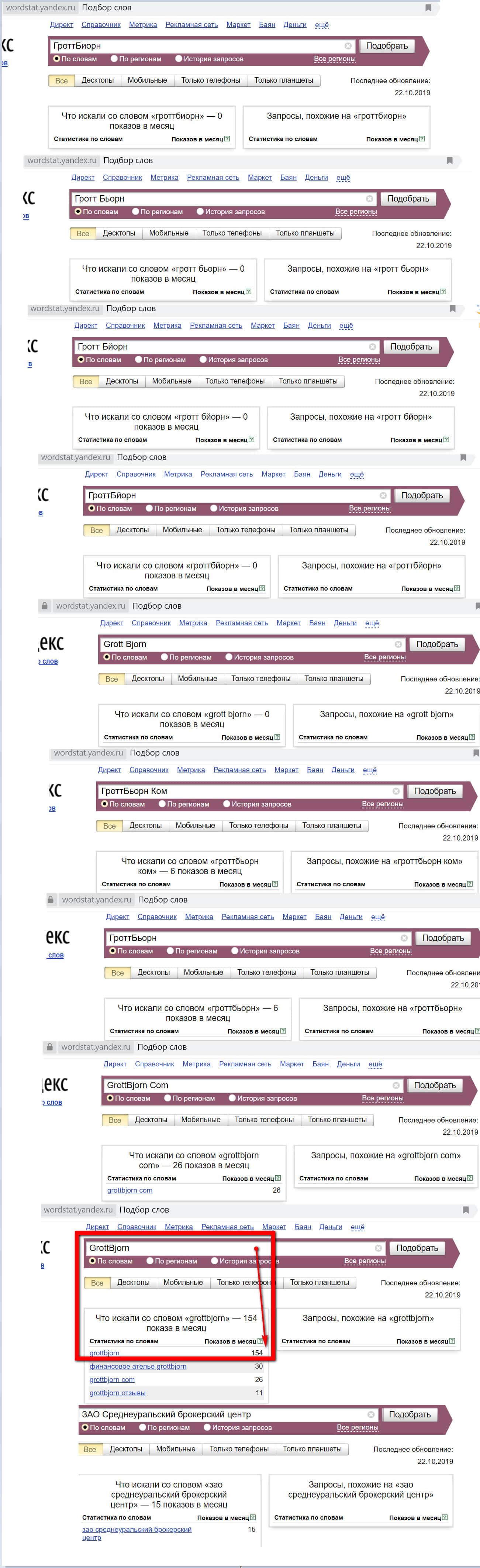 - судя по статистике Яндекс, компанию ЗАО "Среднеуральский брокерский центр" (включая бренды) почти не запрашивает в поиске, т.е. РЕАЛЬНОЙ ДЕЯТЕЛЬНОСТИ GrottBjorn НЕ ВЕДЕТ !!!