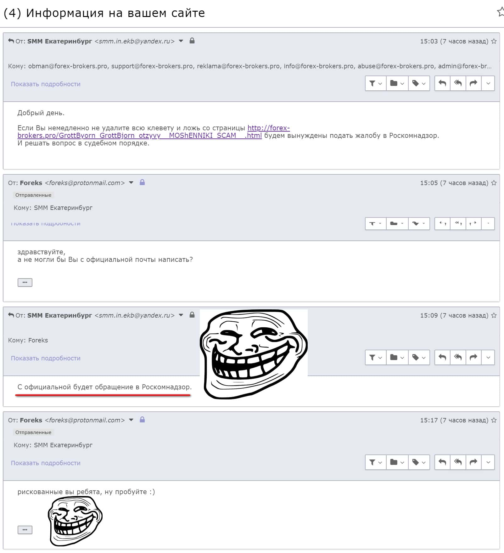 В случае, если брокер ГроттБйорн Вас ограбил, то в такой ситуации в обязательном порядке сообщите об этом случае нам. Еще интересна информация, каким образом через ЗАО "Среднеуральский брокерский центр" и Московскую Биржу махинаторы деньги отмывают. Если обладаете какой-то ценной информацией, то сообщите адрес электронного ящика в форме обратной связи чуть ниже, с Вами выйдут на контакт.