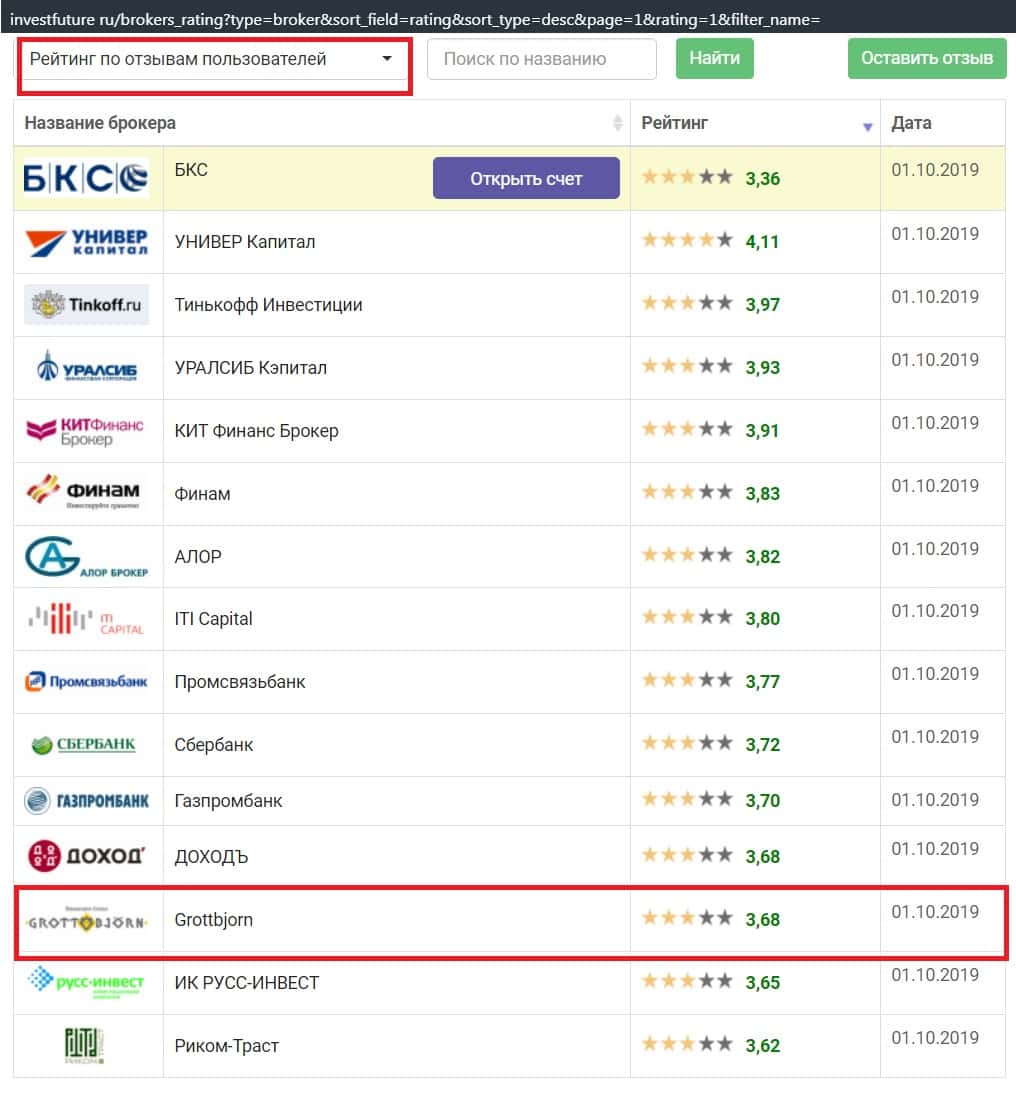 И когда только выбираешь критерием для составления рейтинга отзывы пользователей, то в конце списка и появляется рассматриваемая компания GrottBjorn.