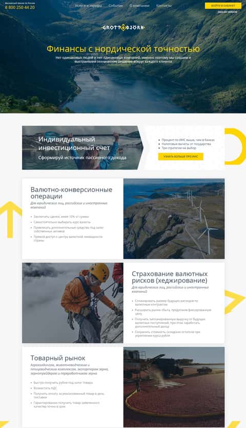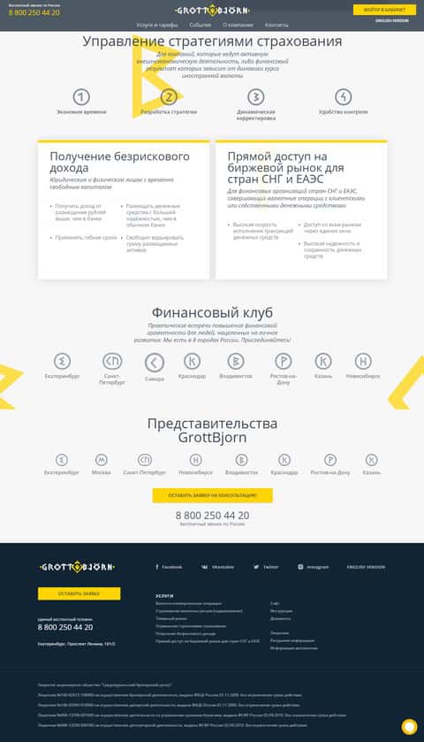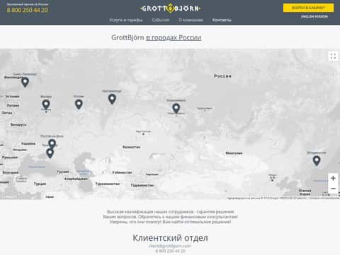 Во второй части своего портала контора ГроттБйорн пытается подметить свой всероссийский уровень, а также указывает на прямой выход на биржевые рынки и безрисковый доход. Обычно такие заявления делают различные форекс-кухни, от которых и не сильно отличаются коллеги из GrottBjorn.