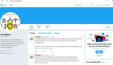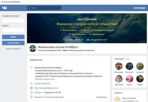 - Деятельность брокера GrottBjorn в социальных сетях