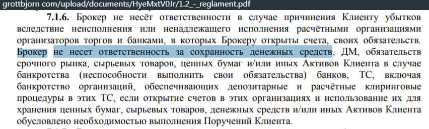 - В ГроттБйорн не несут ответственности за сохранность клиентских денег