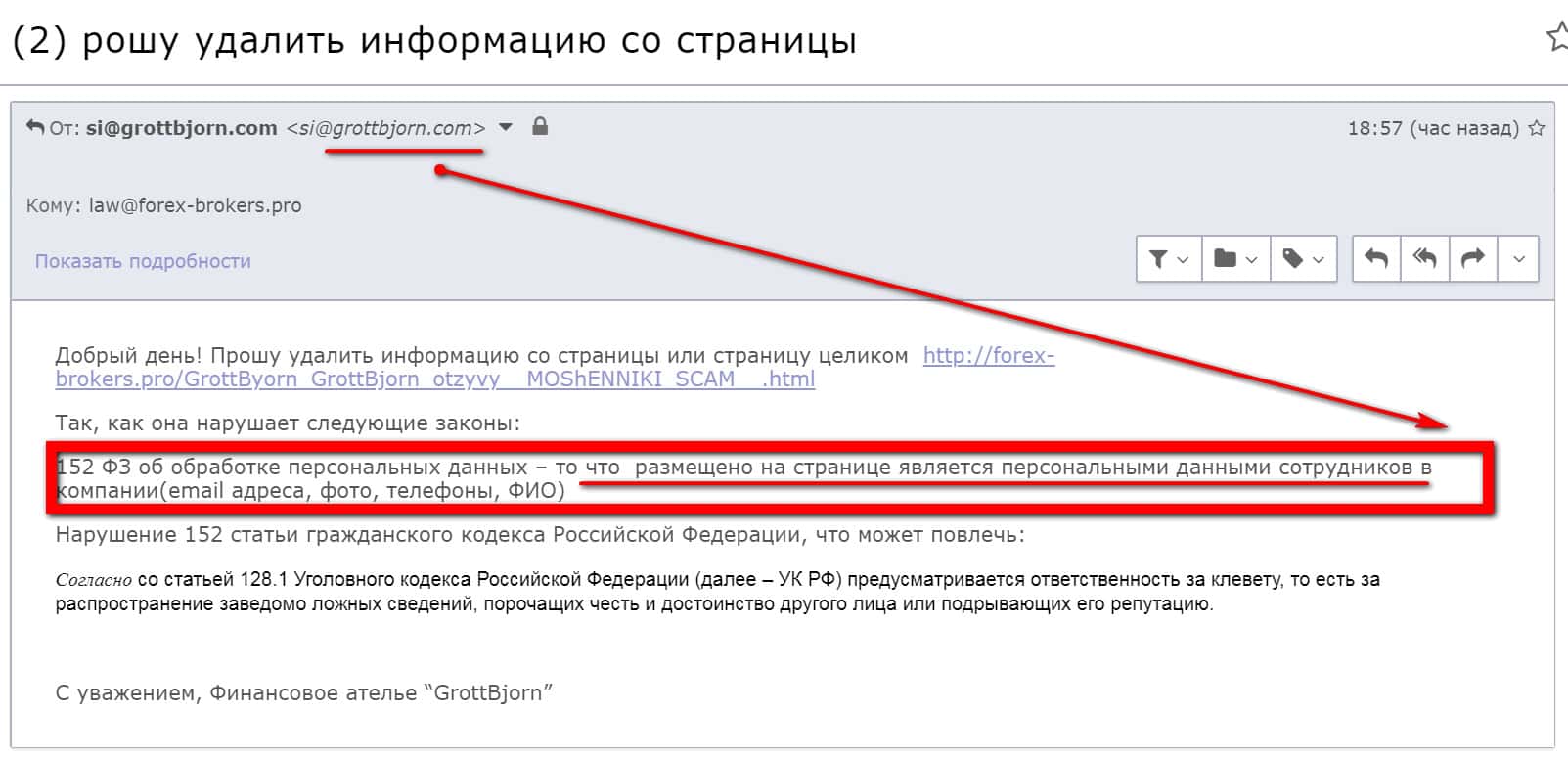 Контора GrottBjorn боялась выставить свое руководство и сотрудников. Почему спросите Вы? А потому, ответим мы - ниже приводим официальное требование убрать всю информацию о сотрудниках компании Гротт Бйорн.