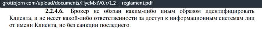 Очередной правило, создающее возможность украсть деньги у клиента, прописано в регламенте компании Гротт Бйорн. Организация не несет ответственности за безопасность информации клиента.