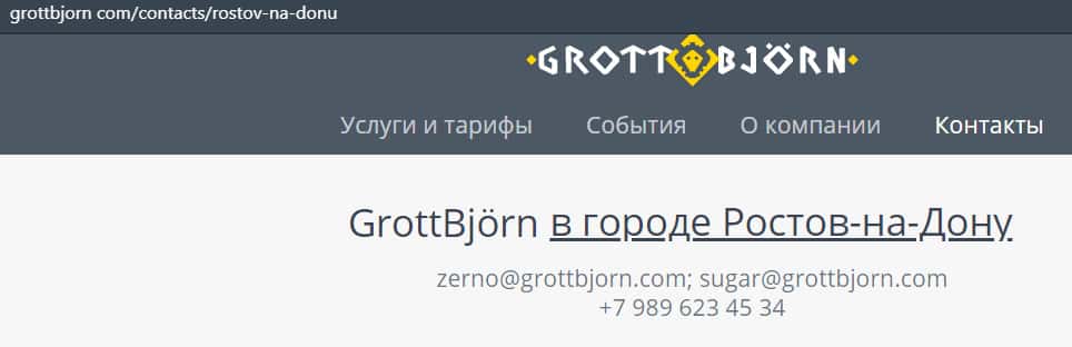 Ниже приводим ПУБЛИЧНУЮ контактную онформацию компании Гротт Бйорн (об их офисах):