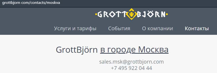 - отдел продаж в Москве - электронная почта sales.msk@grottbjorn com и телефон +74959220444