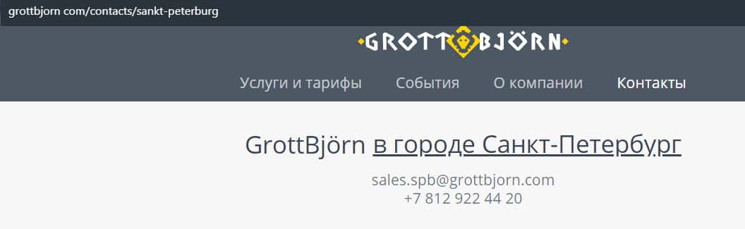- отдел продаж в Санкт-Петербурге - электронная почта sales.spb@grottbjorn com и телефон +78129224420