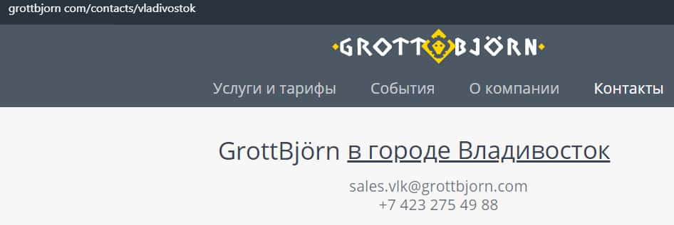 - отдел продаж во Владивостоке - электронная почта sales.vlk@grottbjorn com и телефон +74232754988