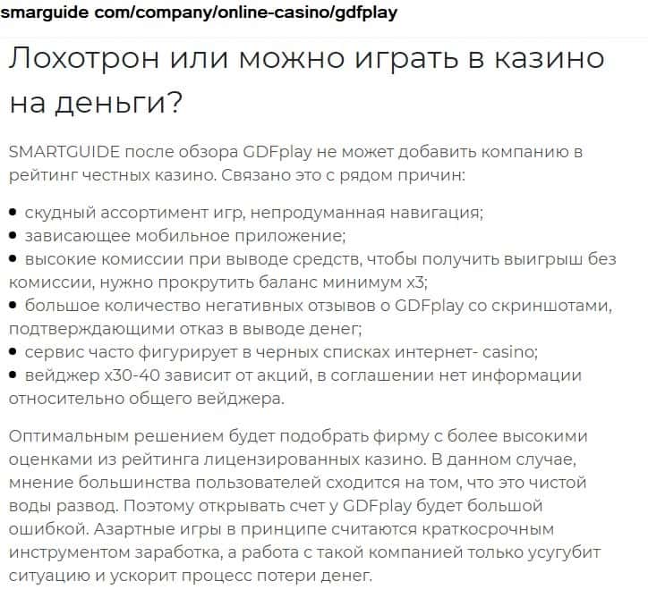- Мошенники GDFPlay находятся в черном списке на обзорниках