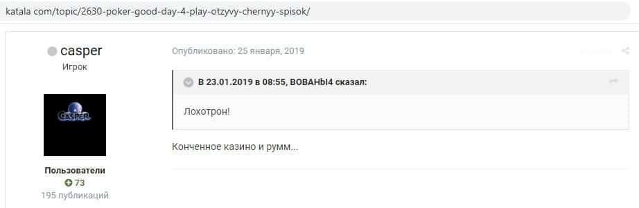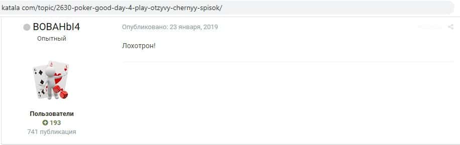 - Мнение о работе мошенников Гуд Дэй 4 Плэй на разных ресурсах