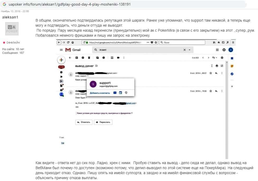 Жулики Гуд Дэй 4 Плэй не выводят людям деньги