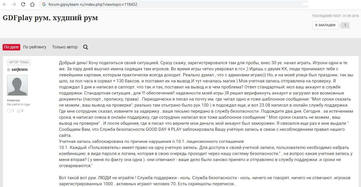 Отзывы пострадавших Гуд Дэй 4 Плэй на разных сайтах