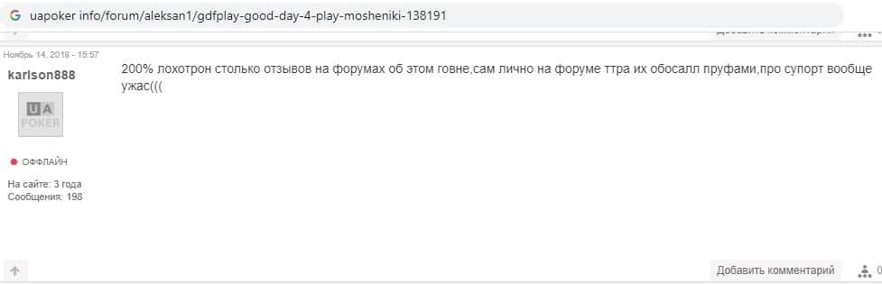 Некоторые люди не сдерживают своих накопившихся эмоций в адрес мошенников Гуд Дэй 4 Плэй. И прямым текстом пишут о том, кто они на самом деле.