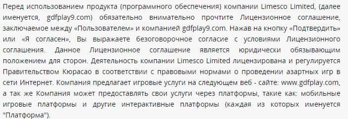 Клиентское соглашение мошенников GDFPlay