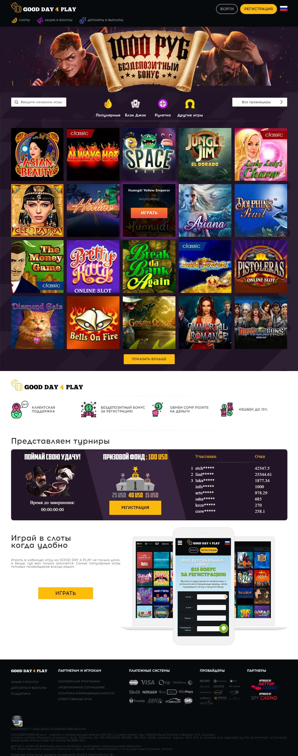 Опытные люди, которые за свою жизнь играли не в одном казино, сразу говорят о том, что Гуд Дэй 4 Плэй - это банальная шарага, которая делает заманухи, а потом кидает.