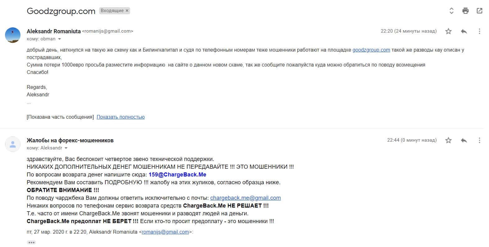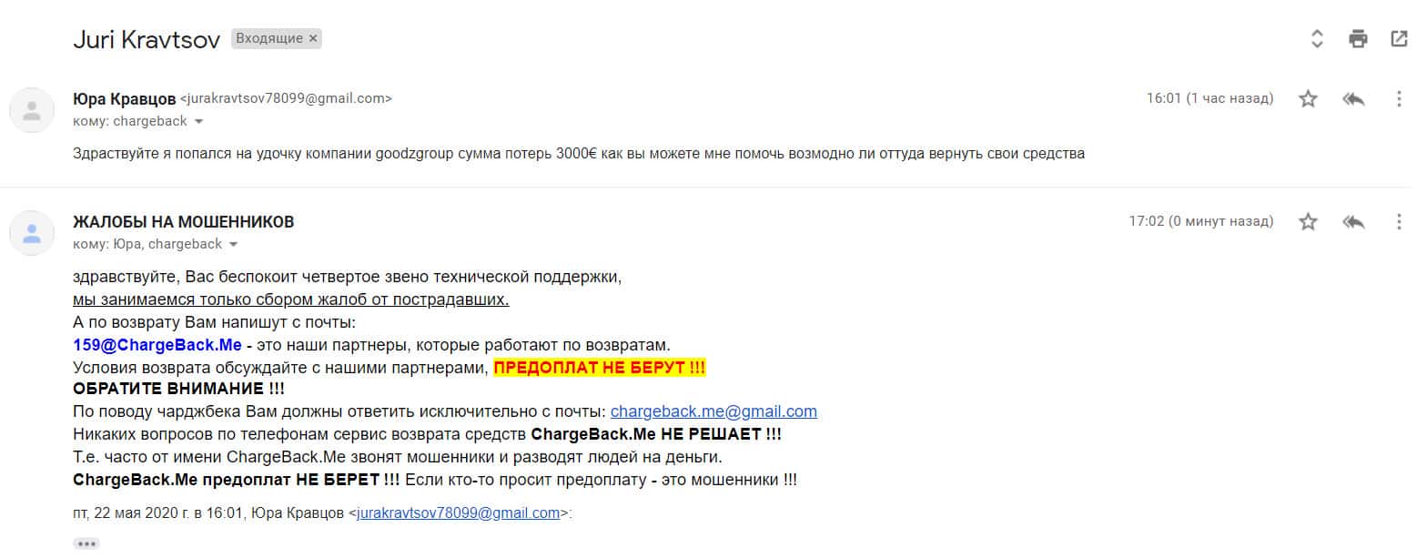 - Очередная жалоба на контору аферистов GoodzGroup