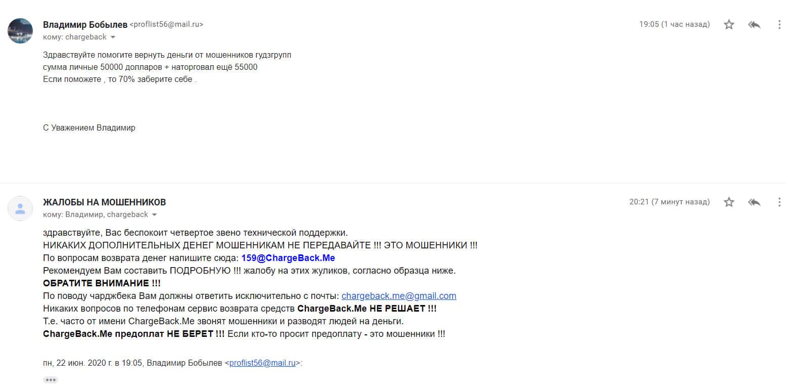 Относительно попыток получить свои вложенные деньги от МОШЕННИКОВ Гудз Групп - пишите сообщение на мыло: [email protected]