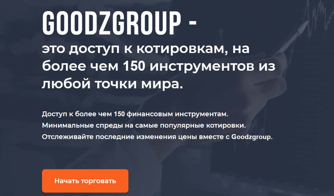 Контора GoodzGroup предлагает возможность торговать самыми популярными криптовалютами, акциями самых известных мировых компаний и методом валютных пар зарабатывать на изменении курсов валют. Казалось бы очень выгодно, но какой в этом смысл, если по итогу денег клиент все равно не увидит.