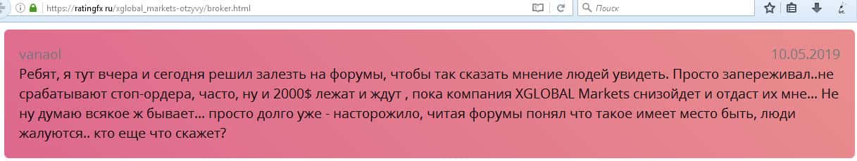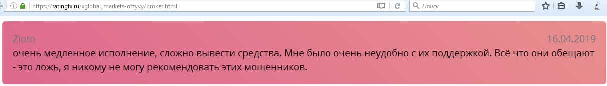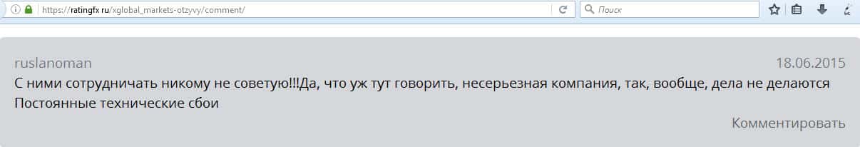 - Некий ruslanoman на сайте ratingfx ru оставил гневный отзыв о работе XGLOBAL