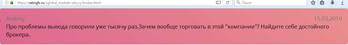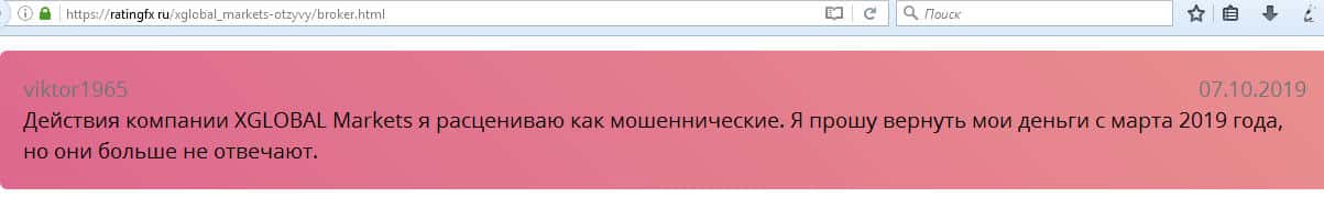 - Отзыв Максима, бывшего клиента брокера XGLOBAL, оставленного на ресурсе ratingfx ru