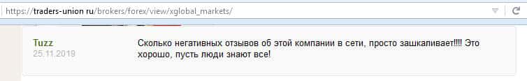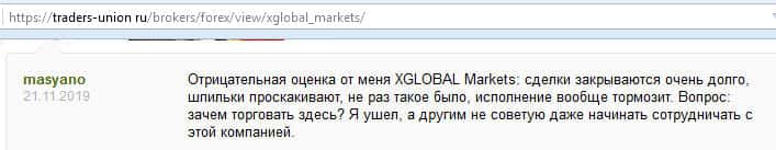 - Отрицательная оценка работы компании ХGLOBAL оставлена Masyano на сайте traders-union ru