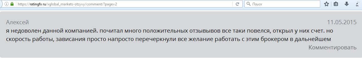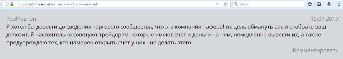 Некий ruslanoman на сайте ratingfx ru оставил гневный отзыв о работе XGLOBAL