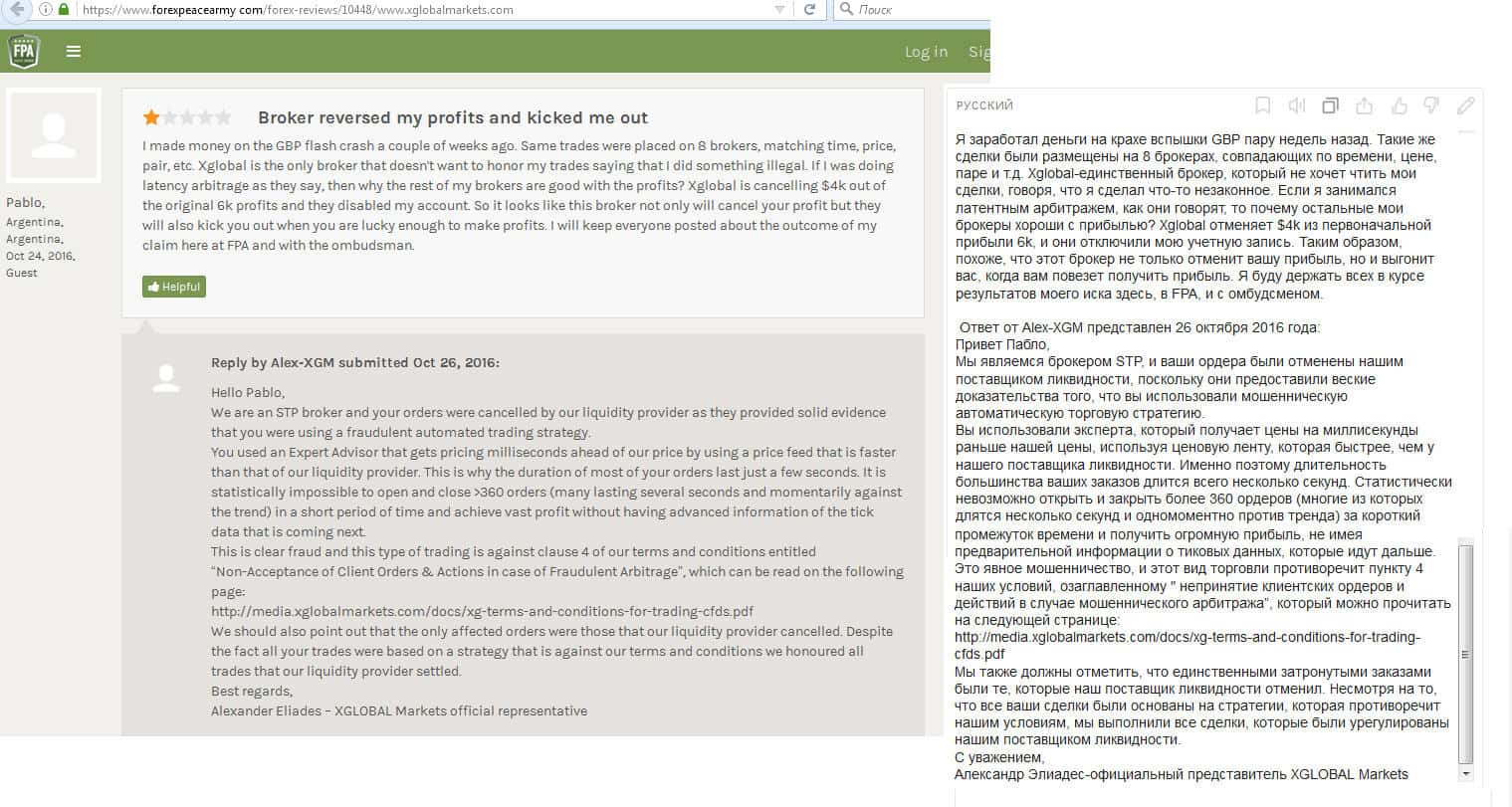 - Жалоба с сайта forexpeacearmy com некого Alex потерявшего с XGLOBAL 5 000 долларов
