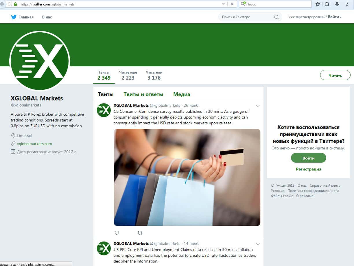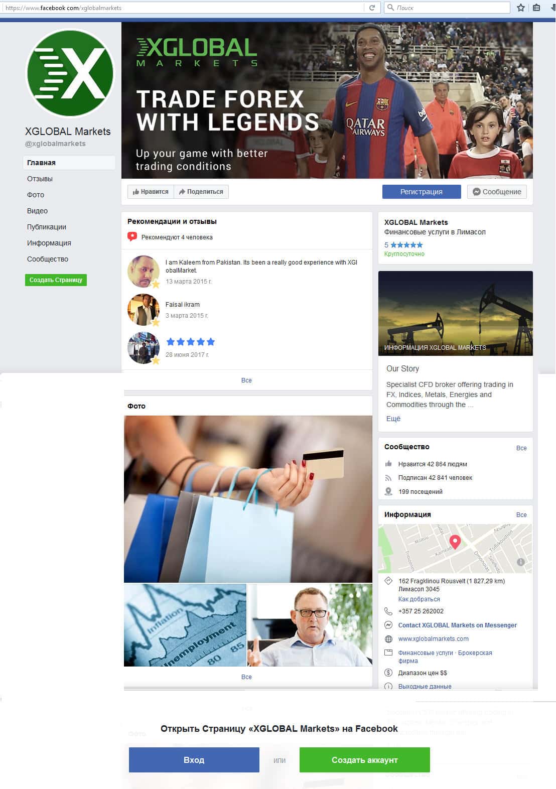 Контора XGLOBAL имеет регистрацию в социальных сетях