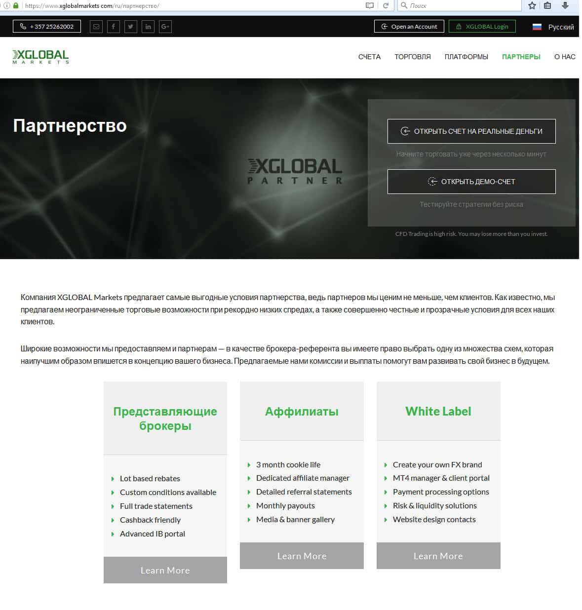 - Партнерам контора XGLOBAL предлагает неограниченные торговые возможности