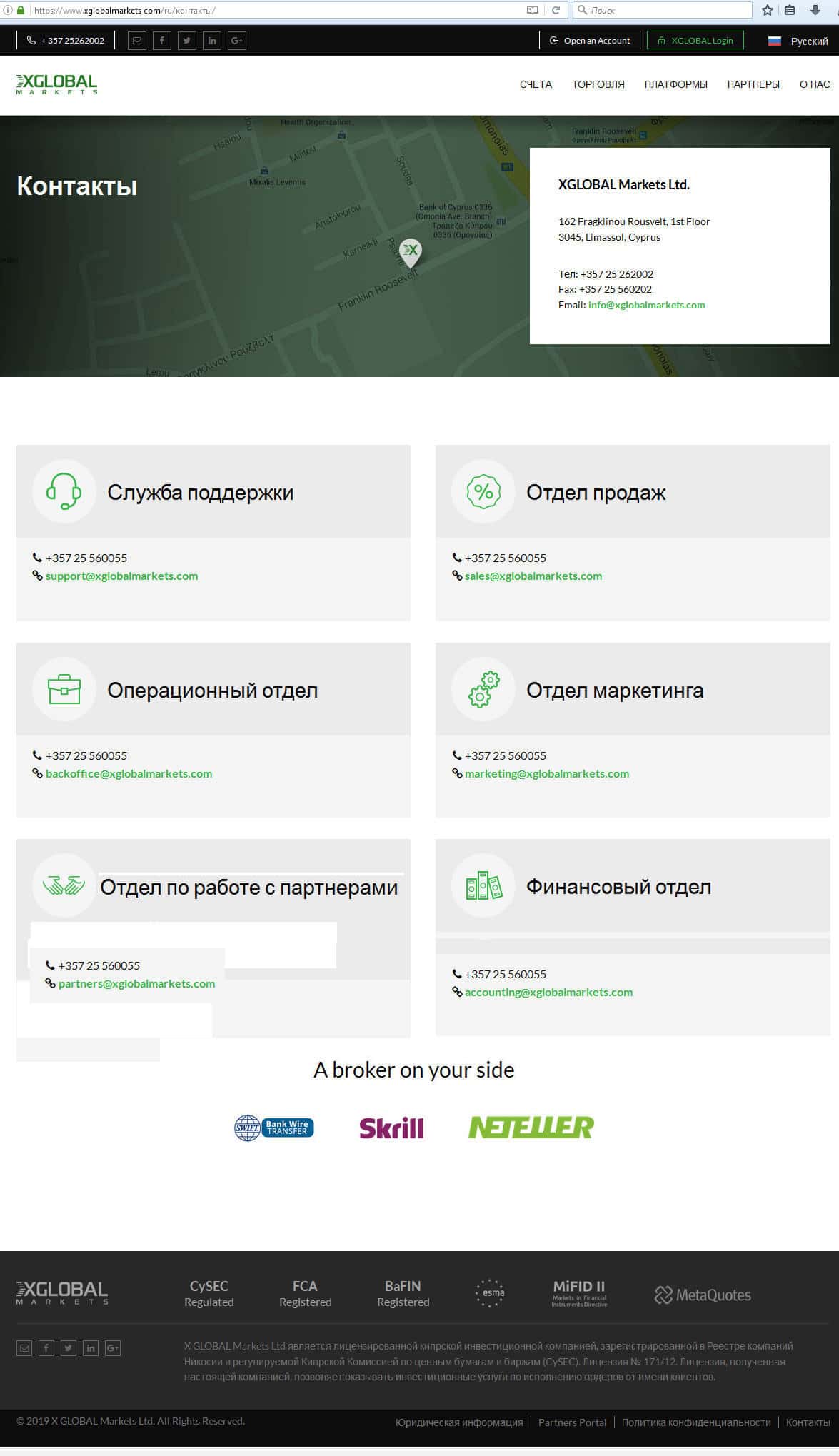 - почта отдела маркетинга accounting@xglobalmarkets com