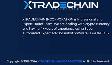 Что касается регулирования деятельности этой шарашкиной конторы XTradeChain, так здесь нечего рассказать, кроме как сослаться на информацию внизу страницы. Кухня просто высказывает фразы, что у них крутая команда, которой можно доверять, а софт вообще ни одного минусового дня не выдал. Где-то эту лапшу мы уже слышали и не раз.
