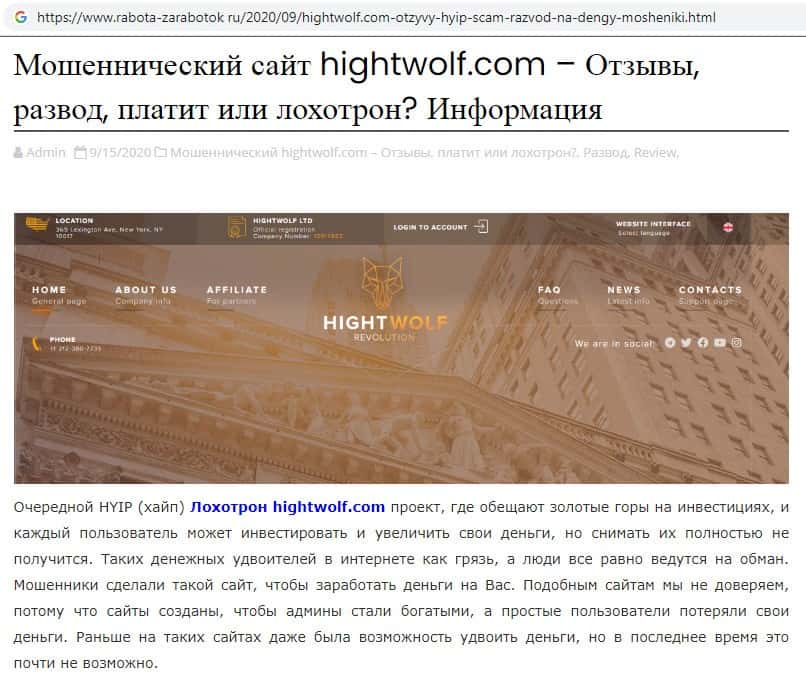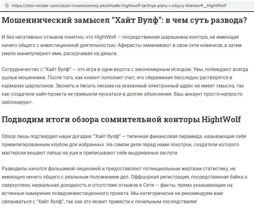 - hightwolf com - официальный онлайн-портал аферистов Хай Волф