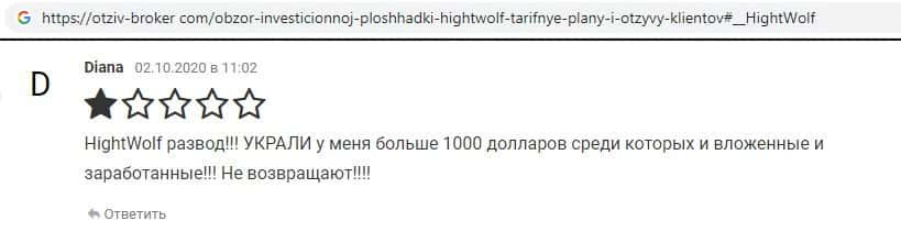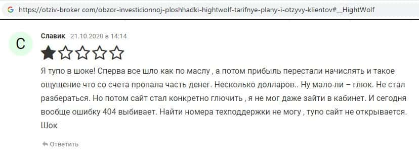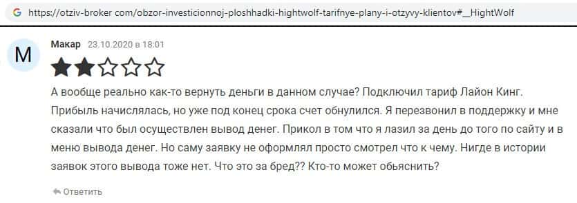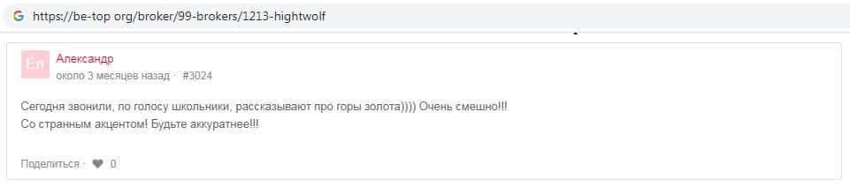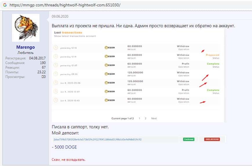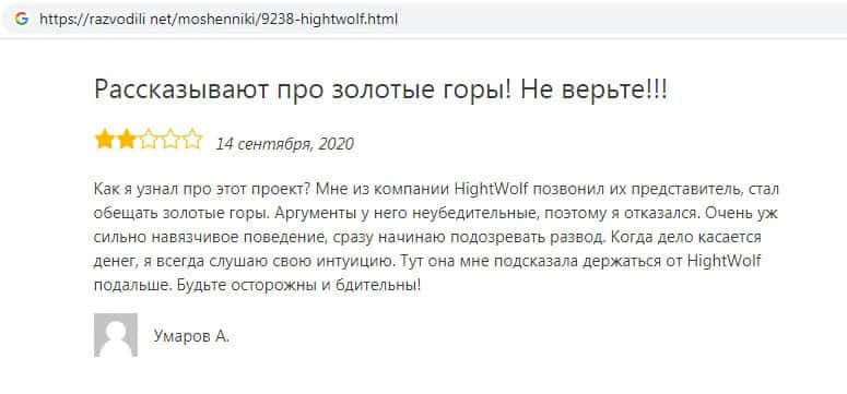 - Отзывы о финансовой пирамиде Hight Wolf, ныне присутствующие в сети
