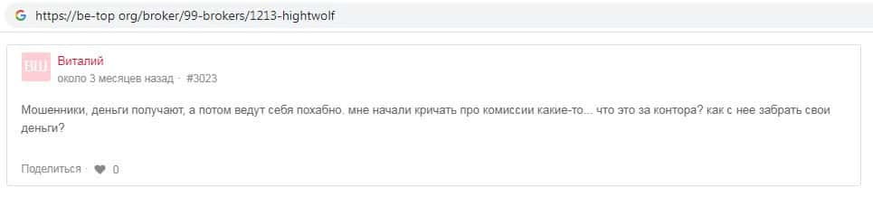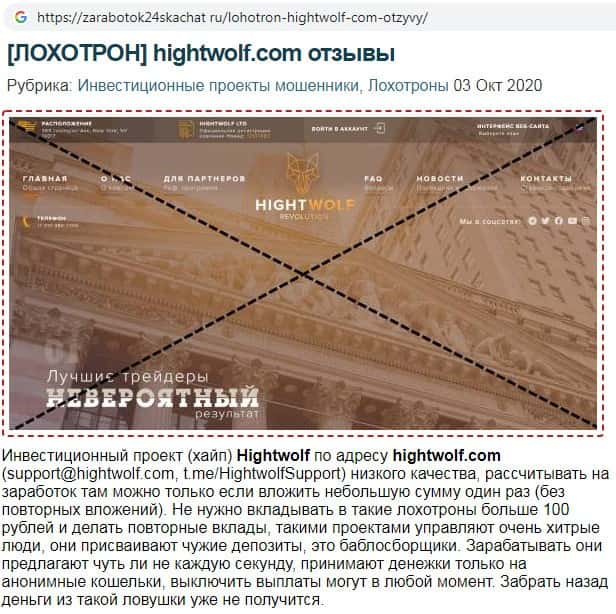 Отзывы о финансовой пирамиде Hight Wolf, ныне присутствующие в сети