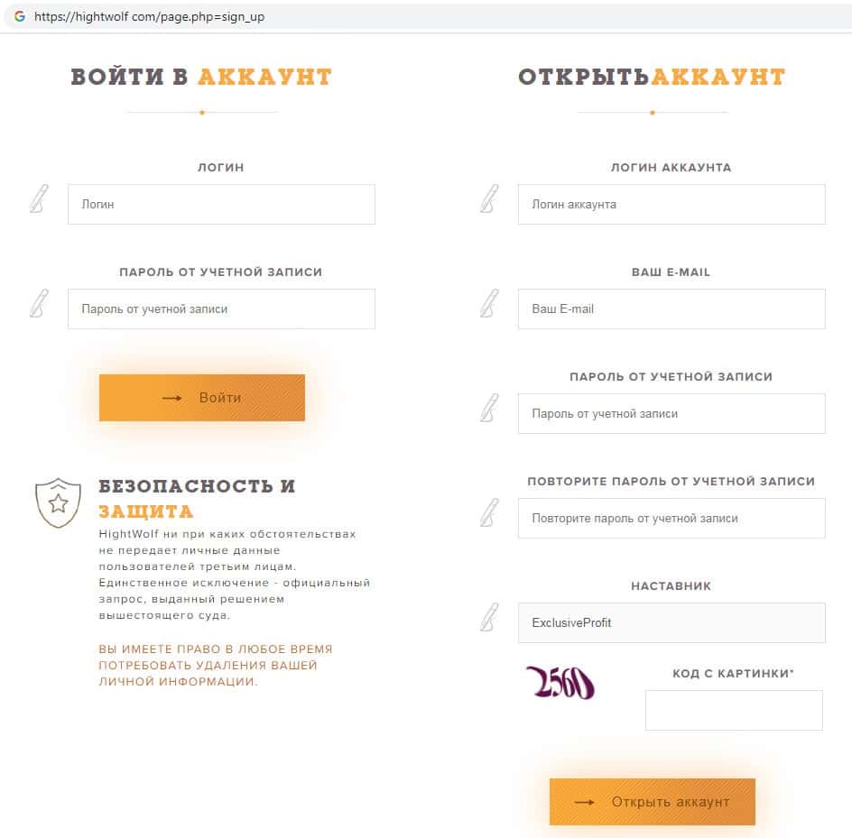hightwolf com - официальный онлайн-портал аферистов Хай Волф