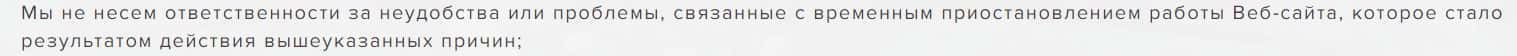 Аферисты Хай Волф предупреждают пользователей о том, что нет никаких гарантий того, что сайт компании будет работать беспрерывно.