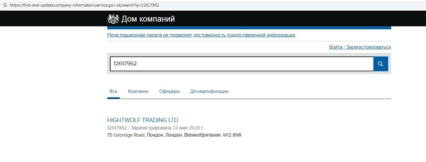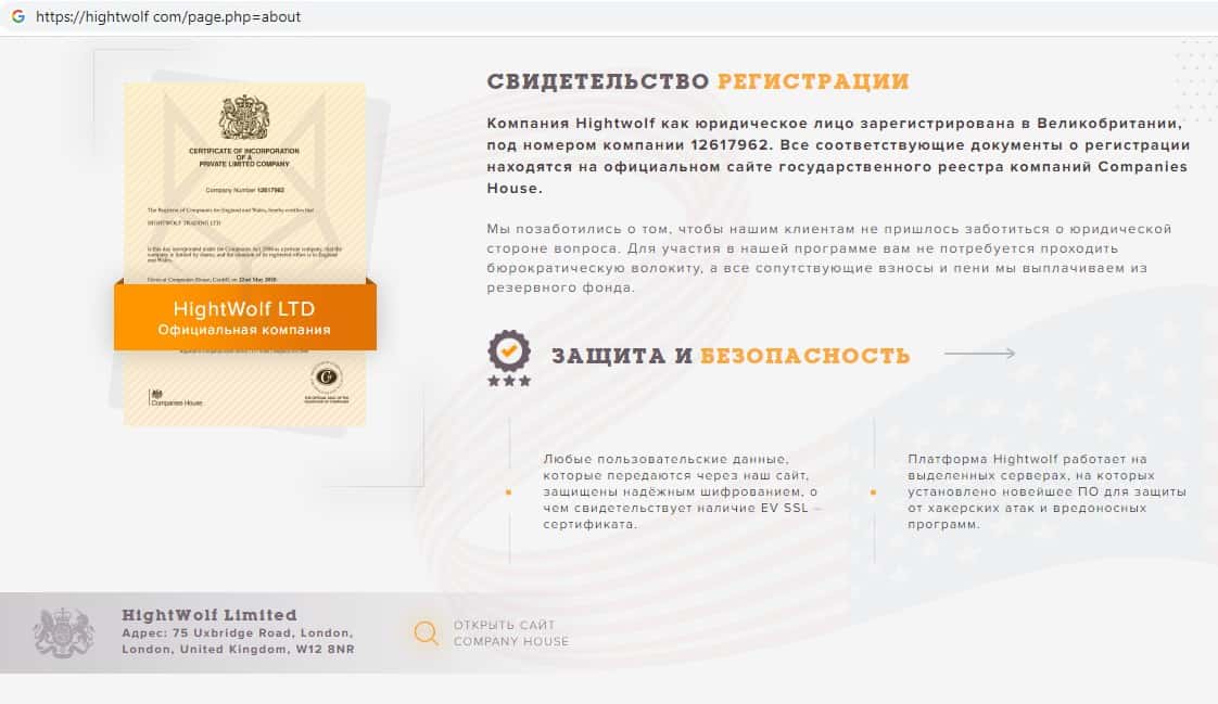 Сведения о месте регистрации Хай Волф фальшивы, так как большинство мошеннических проектов у себя на сайте указывают адрес в Лондоне для приманки очередного лоха.