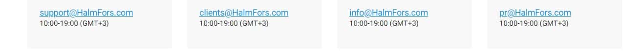 Также на сайте в разделе Контакты HalmFors вы можете увидеть адреса офисов в Гонконге, Миннеаполисе, Лондоне, Москве и Санкт-Петербурге.