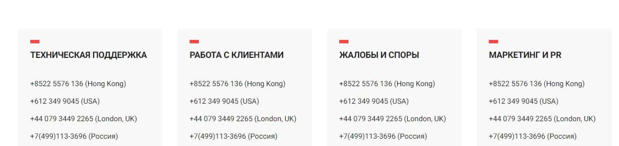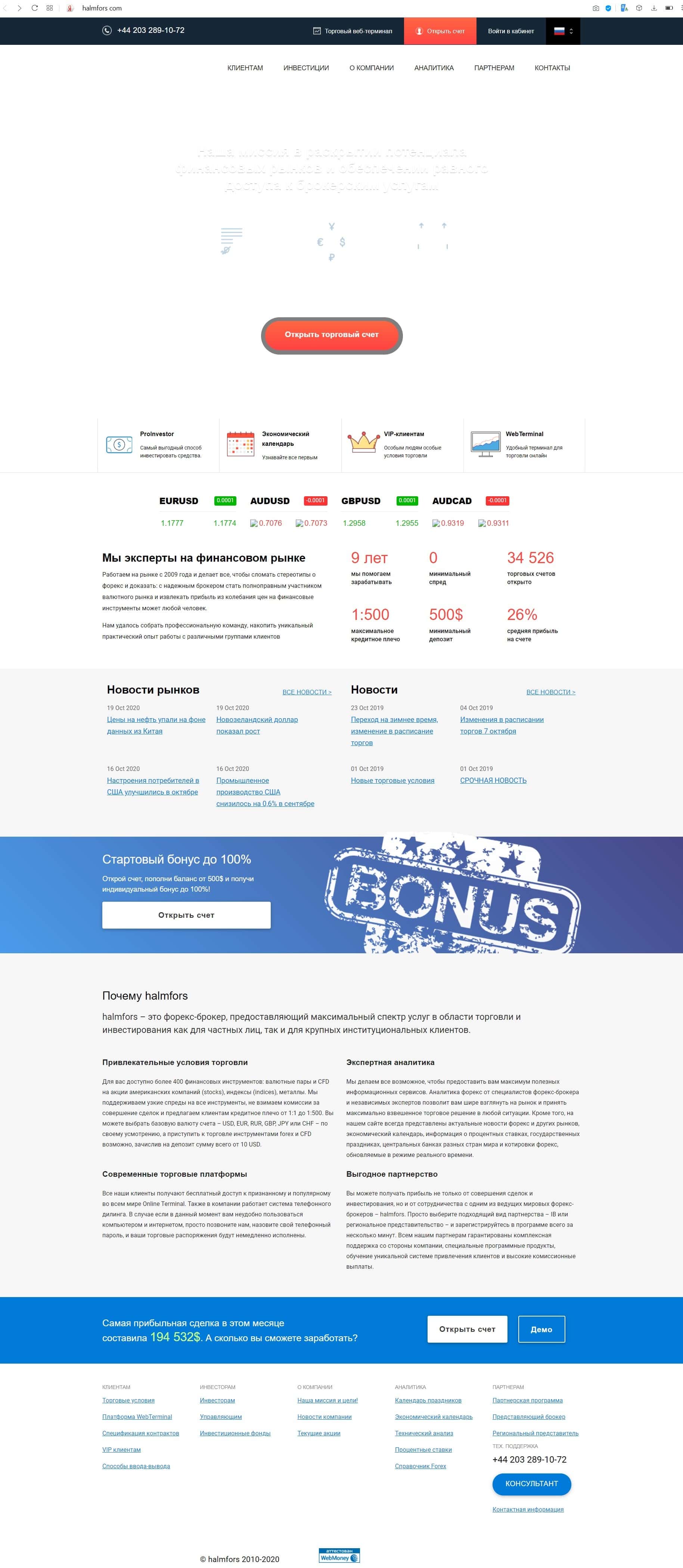 На сайте брокерской конторы HalmFors имеется несколько телефонных номеров, якобы принадлежащим офисам в разных странах. Надо полагать, большинство из них поддельные.