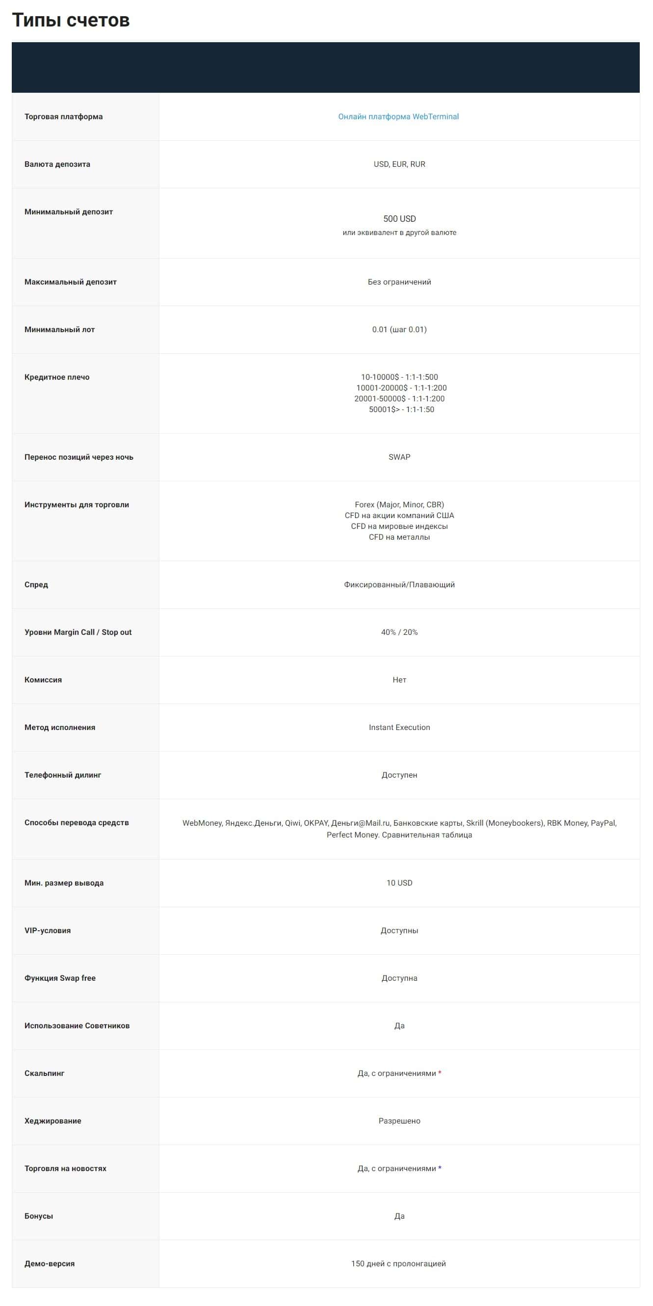 Надо сказать, что при взгляде на типы счетов брокера HalmFors абсолютно непонятно, какие тарифы пытались создать владельцы этого лохотрона и зачем они пользователям.